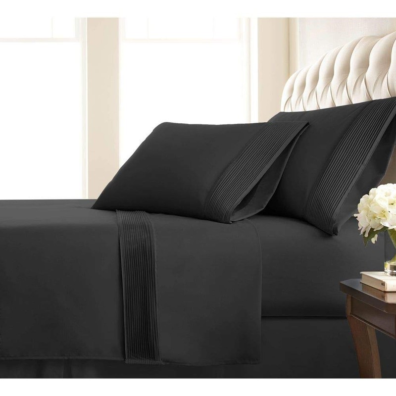 TRP 4 Piece Modern & Contemporary Classic 21-Inch Extra Deep Pocket Pleated Sheet Set Fully Elasticized Fitted Sheet 110 GSM Microfiber Fabric Farmhouse Bedding All Season Black Bed Sheets Queen