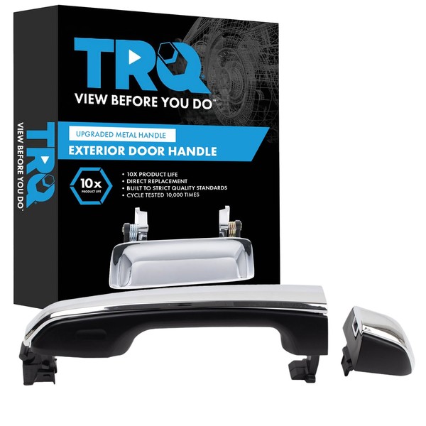 TRQ Exterior Door Handle Smooth Black With Chrome Insert Compatible with 2010-2020 Lexus GX460 Toyota 4Runner