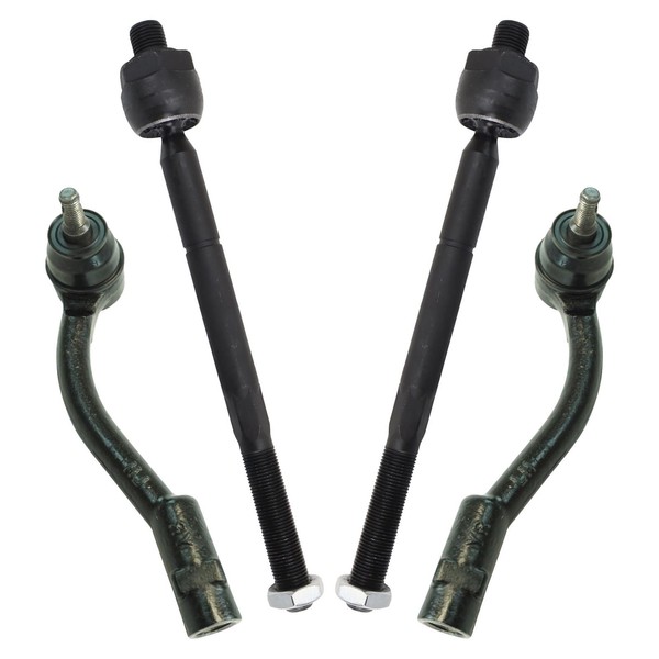 TRQ Inner and Outer Driver and Passenger Side Tie Rod Set 4 Piece Compatible with 2012-2013 Kia Soul