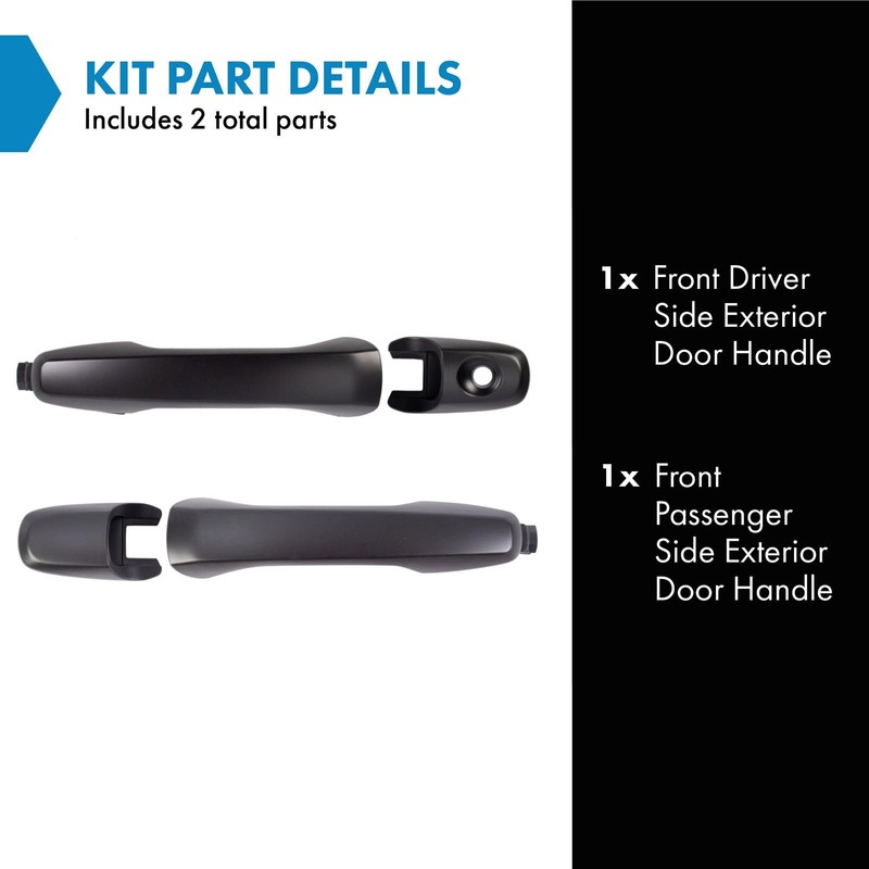 • Kit Includes:(1) Front Driver Side Exterior Door Handle; (1) Front Passenger Side Exterior Door Handle