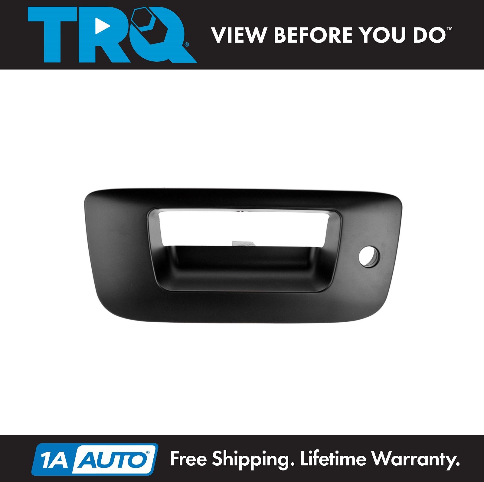TRQ Tailgate Handle Bezel with Keyhole Smooth Black for 07-14 Silverado Sierra