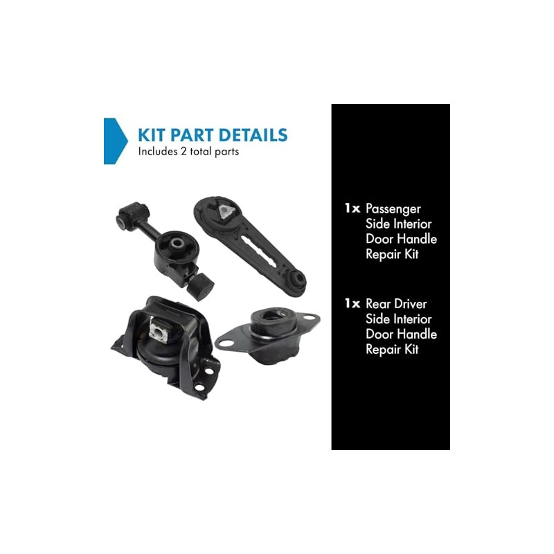 • Kit Includes: (1) Transmission Mount; (2) Engine Torque Strut Mounts; (1) Passenger Side Engine Mount