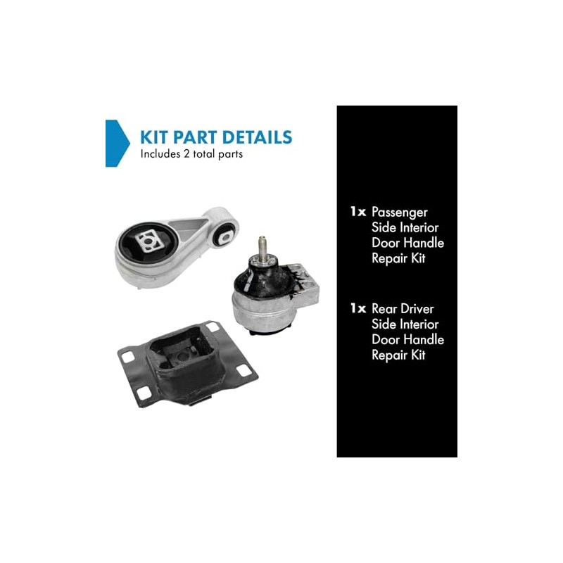 3 Piece Engine & Transmission Mount KitKit Includes(1) Front Engine Mount(1) Rear Engine Torque Strut Mount(1) Transmission MountFitmentCompatible with: 2003 Ford Focus ZX3 L4 2.0L DOHCCompatible with: 2003 Ford Focus ZTS L4 2.0L DOHCCompatible with: 2003 Ford Focus ZTW L4 2.0L DOHCCompatible with: 2003 Ford Focus ZX5 L4 2.0L DOHCCompatible with: 2003 Ford Focus SE L4 2.0L DOHCCompatible with: 2004 Ford Focus ZX5 L4 2.0LCompatible with: 2004 Ford Focus ZTS L4 2.0LCompatible with: 2004 Ford Focus ZTW L4 2.0LCompatible with: 2004 Ford Focus SE L4 2.0LCompatible with: 2004 Ford Focus ZX3 L4 2.0LProduct AttributesQuantity: 3 PieceFeatures & Benefits: Direct Fit Replacement - Guaranteed to fit and function for your specific applicationFeatures & Benefits: Highest Quality MaterialsFeatures & Benefits: Quality Tested - built to a strict level of product standards.Reference NumbersAnchor: 2939, 2986, 3003Autopart International: 2010-247516DAI: 7064DEA Products: A2939, A2986, A3003DIY Solutions: EMT00422, EMT00627Ford: 1041742, 1041744, 1092270, 1092271, 1094591, 1102416, 1133019, 1133020, 1S4Z-7M121, 1S4Z-7M121-AA, 1S4Z-7M121-PA, 1S4Z-7M121AA, 1S4Z7M121, 1S4Z7M121AA, 1S4Z7M121PA, 98AB-6P082, 98AB-6P082-AH, 98AB-6P082AH, 98AB-7M121, 98AB-7M121-AJ, 98AB-7M121-AK, 98AB-7M121-CH, 98AB-7M121AJ, 98AB-7M121AK, 98AB-7M121CH, 98AB6P082, 98AB6P082AH, 98AB7M121, 98AB7M121AJ, 98AB7M121AK, 98AB7M121CH, YS4Z-6038-AA, YS4Z-6038AA, YS4Z-6068, YS4Z-6068-AA, YS4Z-6068AA, YS4Z6038AA, YS4Z6038BA, YS4Z6068, YS4Z6068AAMarmon Ride Control: A2939, A2986, A3003TRQ: MTA70568Westar: EM-2939, EM-2986, EM-3003