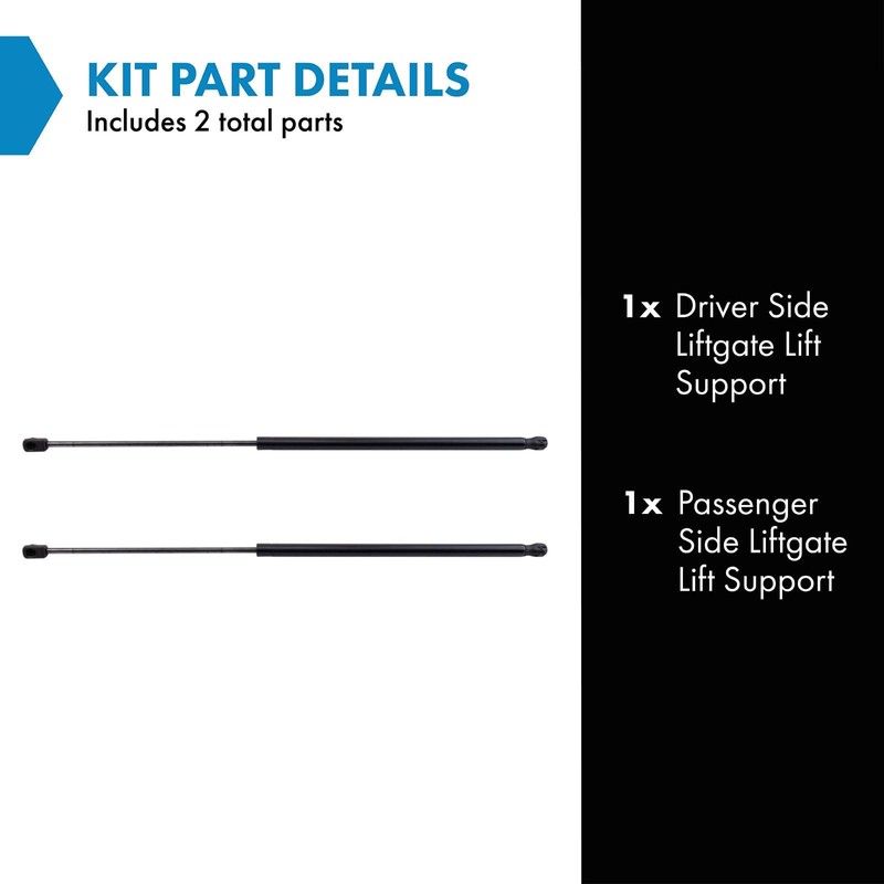 - Kit Includes:(1) Driver Side Liftgate Lift Support; (1) Passenger Side Liftgate Lift Support