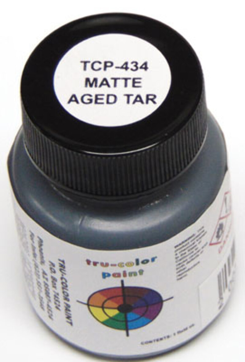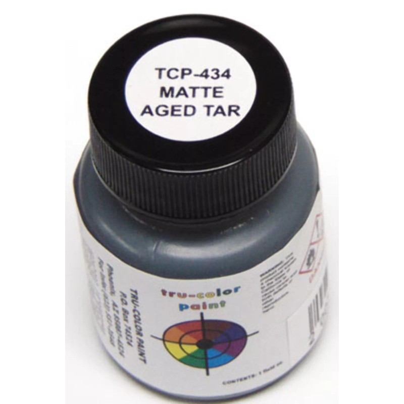 Tru-Color 434 Matte Aged Tar (For Roofs) 1 oz. Acrylic Model Paint Tru Color Sprayable Matte Paint acrylic paint is ideal for any model that requires a flat finish. Designed for airbrushing right from the bottle, this solvent-based acrylic paint requires no thinning.Tru-Color 434 Matte Aged Tar (For Roofs) 1 oz. Acrylic Model Paint