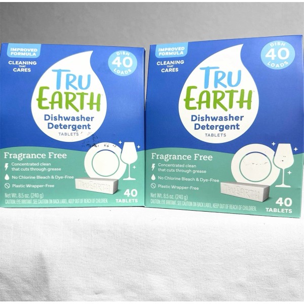 Tru Earth Dishwasher Detergent Tablets 40ct Dye, Fragrance, Paraben Free Lot X2
