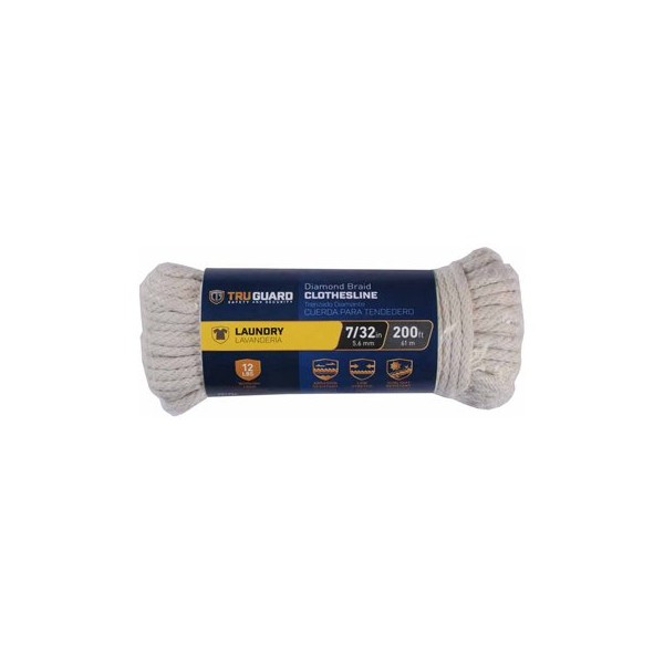 Tru-guard 641900 Diamond Braid Cotton Clothesline W/ Synthetic Core, 7/32" X 200'