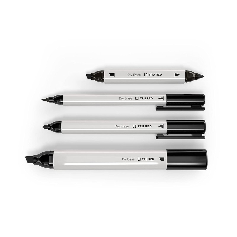 Make your presentations pop and maintain audience interest with this 4-pack of TRU RED assorted color chisel tip dry erase markers. TRU RED markers are designed to feature a unique Squircle tank barrel shape. The Squircle is that perfect mathematical intersession between the square and the circle. Squircle design makes it comfortable and the thicker barrel size makes it easier to hold in the grip of your hand without harsh lines leaving marks on your skin and keeps the markers from rolling on flat surfaces like conference tables or desks.