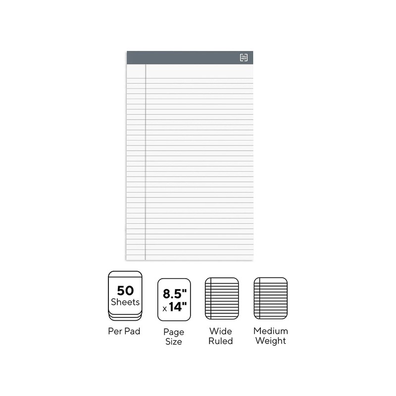 TRU RED Notepads, 8.5 x 14-Inch , Wide Ruled, White, 50 Sheets/Pad, 12 Pads/Pack (TR57372)