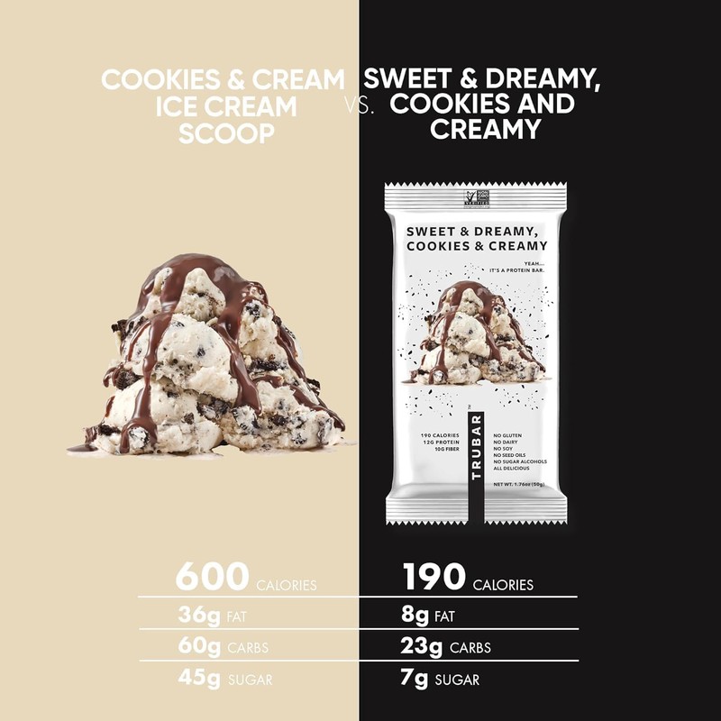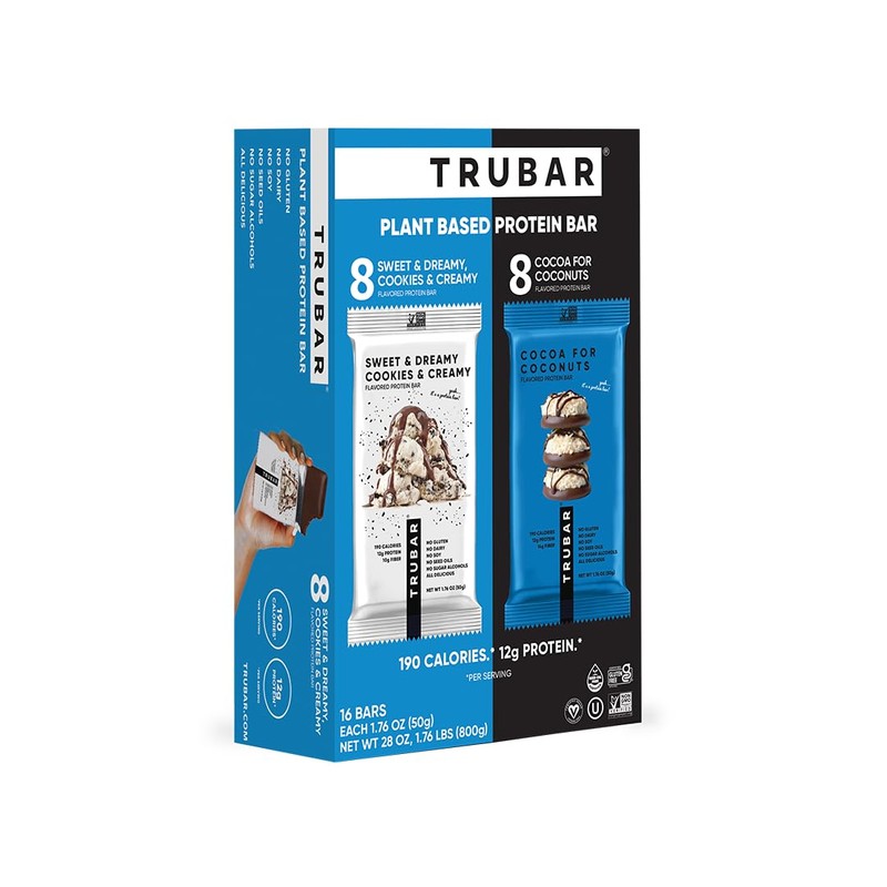 TRUBAR Vegan Protein Bar Cocoa For Coconuts and Cookies and Creamy 16 ct