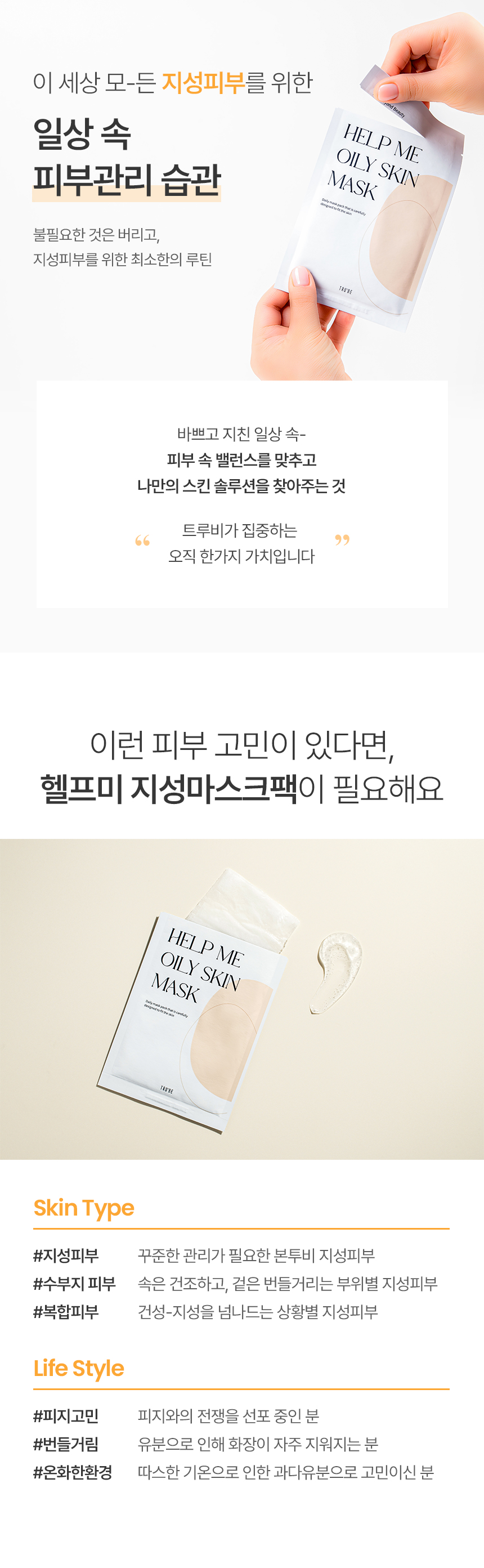 Trubee Help Me Oily Mask Pack 10 sheets + 1 sheet / 트루비 헬프미 지성 마스크팩 10매+1매