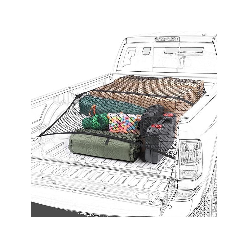 Truck Bed Net, Highly Elastic Cargo Net for Pickup Truck Bed, Stretchable Mesh Organizer for Pickup Trunk Bed, Suitable for Daily Light Loads of Trucks, 4'x4’ Stretches to 7‘x 7’