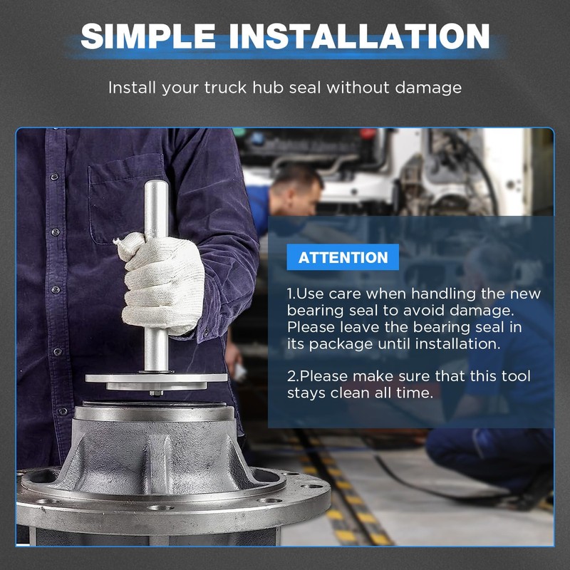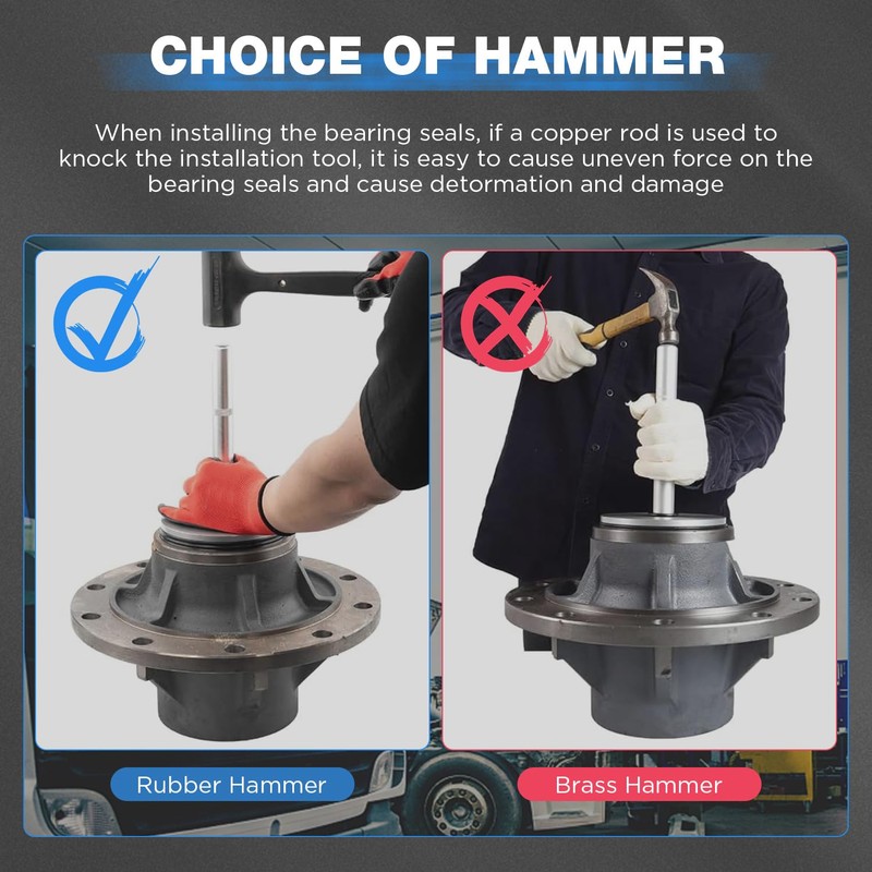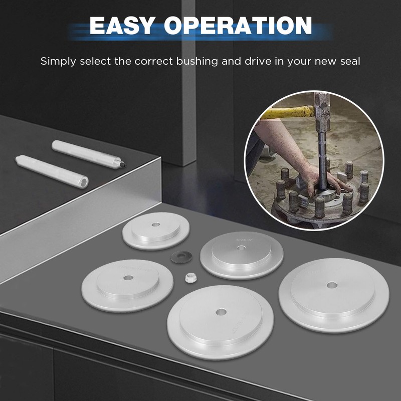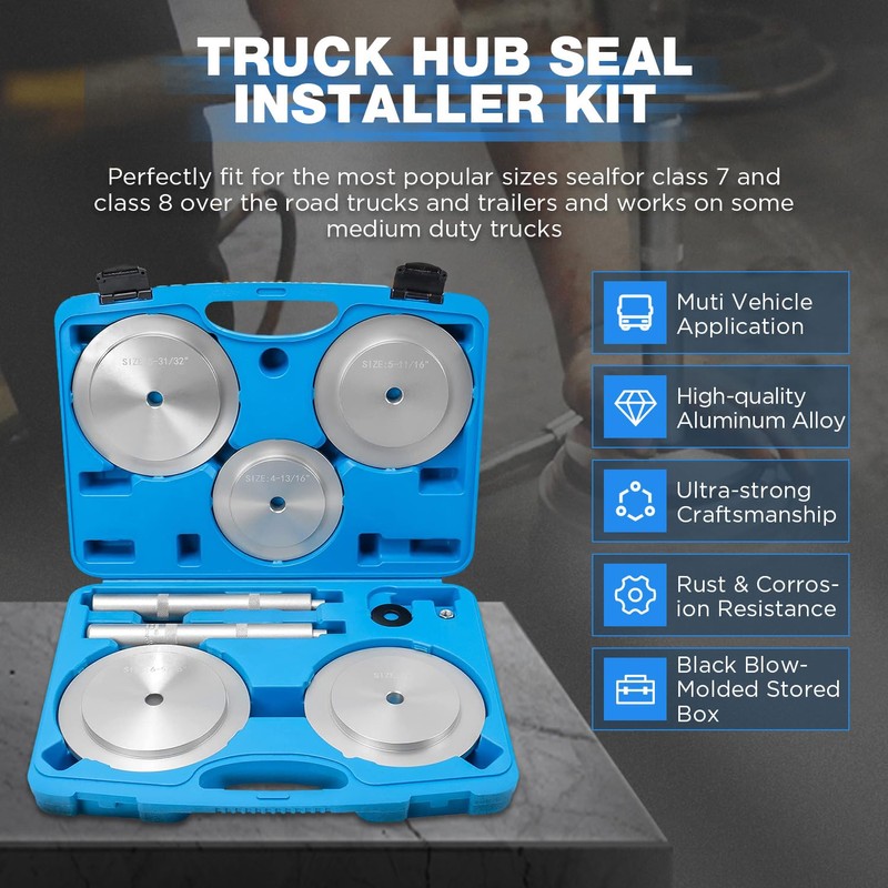 - 🔥🔥🔥【WIDELY APPLICATIONS】61850 truck hub seal installer kit widely fit for most popular sizes of class 7 and 8 over the road trucks and trailers and some medium duty trucks. Truck hub seal installer kit works on some medium duty trucks. Driver size: 4-13/16'', 5-11/16'', 5-31/32'', 6'', 6-5/16''. Note: Please use a rubber mallet to tap lightly when install hub bearing seal