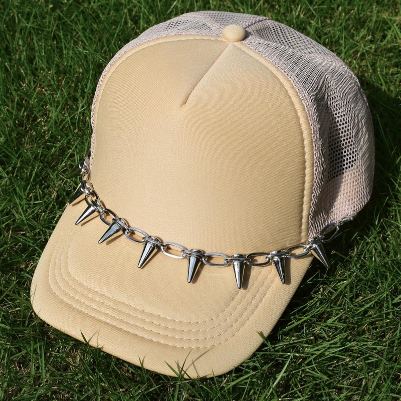 Trucker Hat Chains Rivet Chains for Baseball Cap Decorations Cool Punk Hat Chains Gothic Spike Chains for Trucker Hat Bar, 3pcs