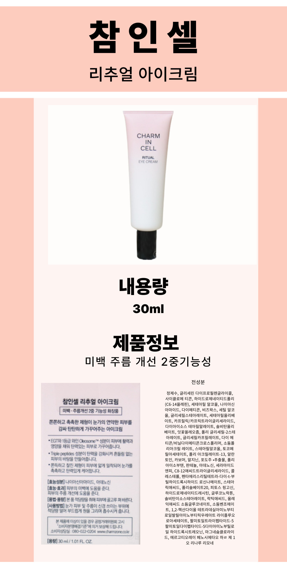 참인셀 리추얼 아이크림 30대 직장인 눈가 주름 관리 칙칙 다크닝 기미 잡티 케어 탄력 촉촉 수분 피부 건