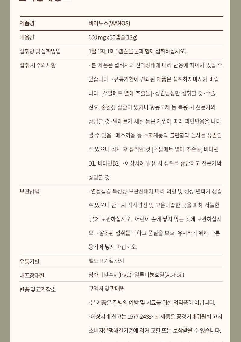 - 섭취량, 섭취방법 및 섭취 시 주의사항 및 부작용 가능성: 상품상세참조