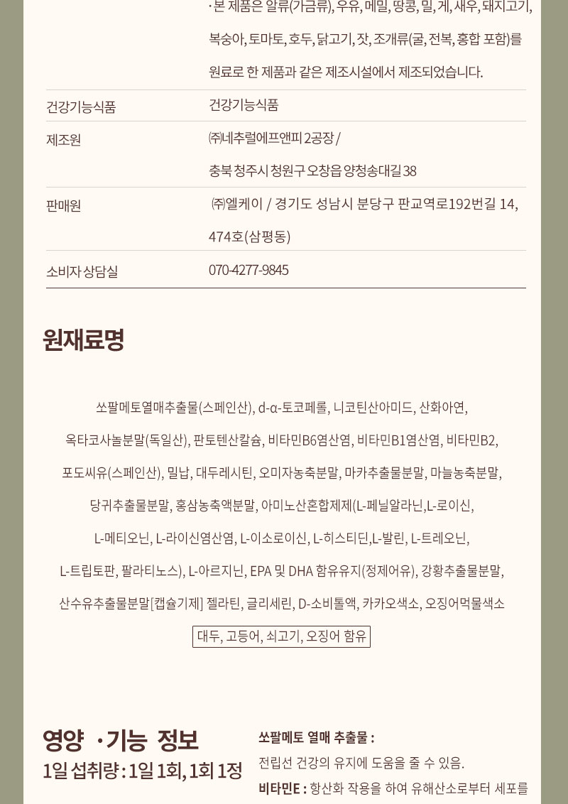 - 원(재)료명 및 함량: 상품상세참조
