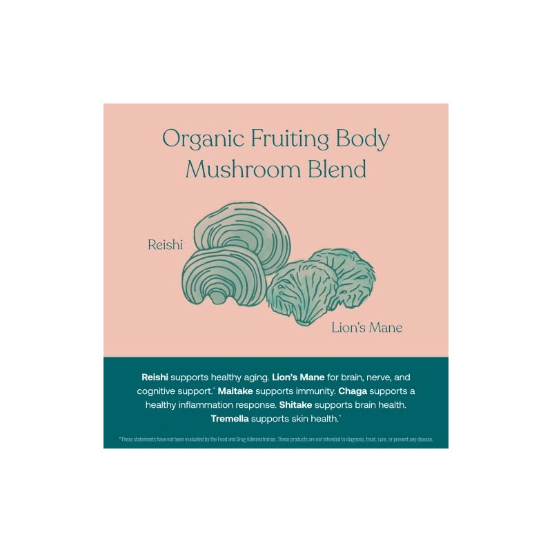 - ORGANIC MUSHROOM BLEND - We use extracts of certified organic mushrooms grown naturally on substrate materials native to each type exclusively from the fruiting body. Extracted to improve bioavailability with no grain fillers providing beta glucans and other compounds that support your health. A special blend of Reishi, Chaga, Shiitake, Lion's Mane and Tremella to support healthy aging, heart and brain health and beauty.