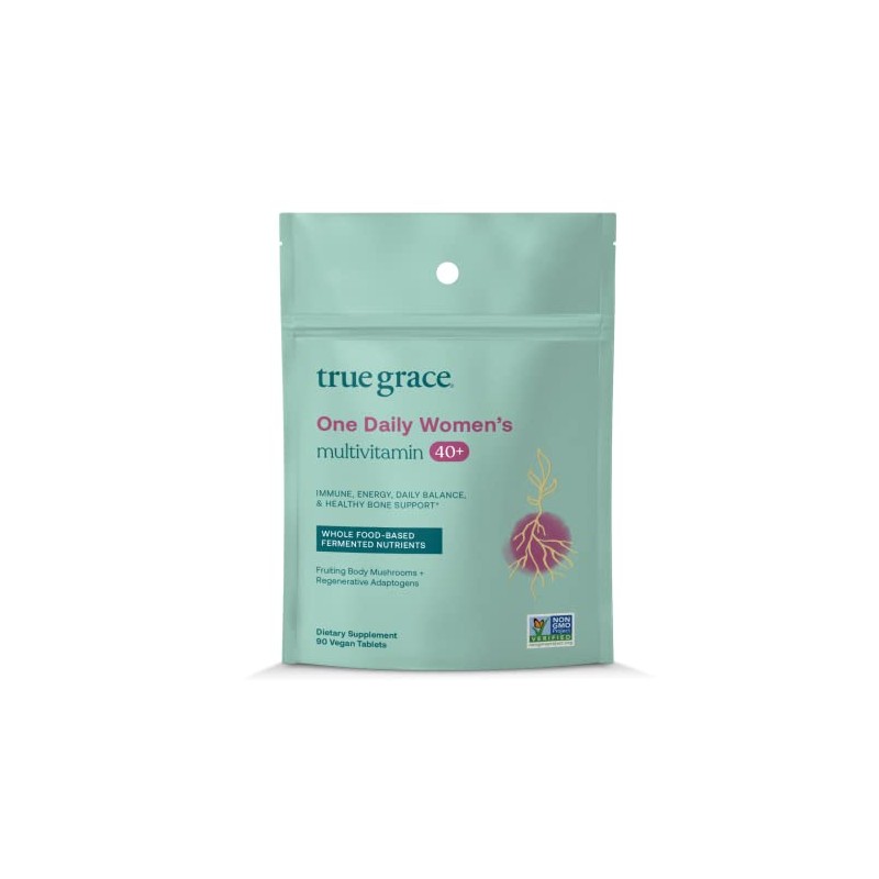 True Grace True Grace One Daily Women's Multivitamin 40+ Fermented Minerals, Organic Adaptogens & Mushrooms Energy, Immune, Bone Support - Non-GMO - Iron, Gluten & Soy Free - 90 Vegan Tablets