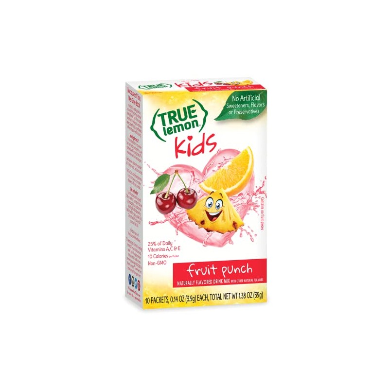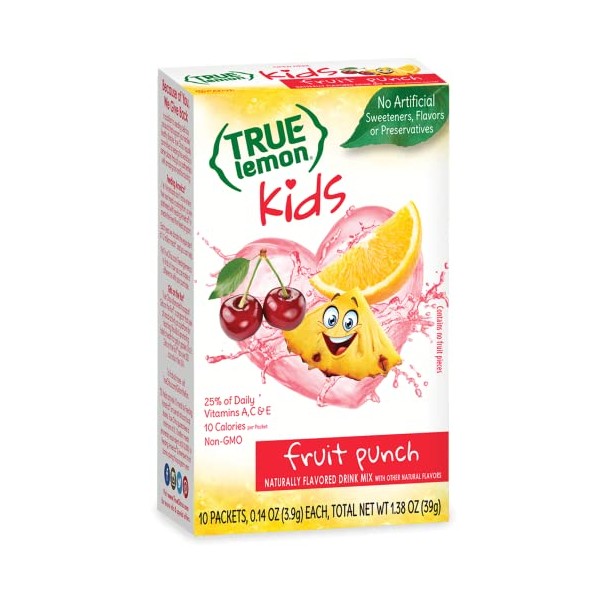 True Lemon Kids Fruit Punch Drink Mix No Artificial Sweeteners or Flavors, 10 count