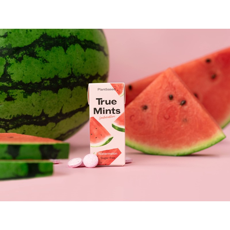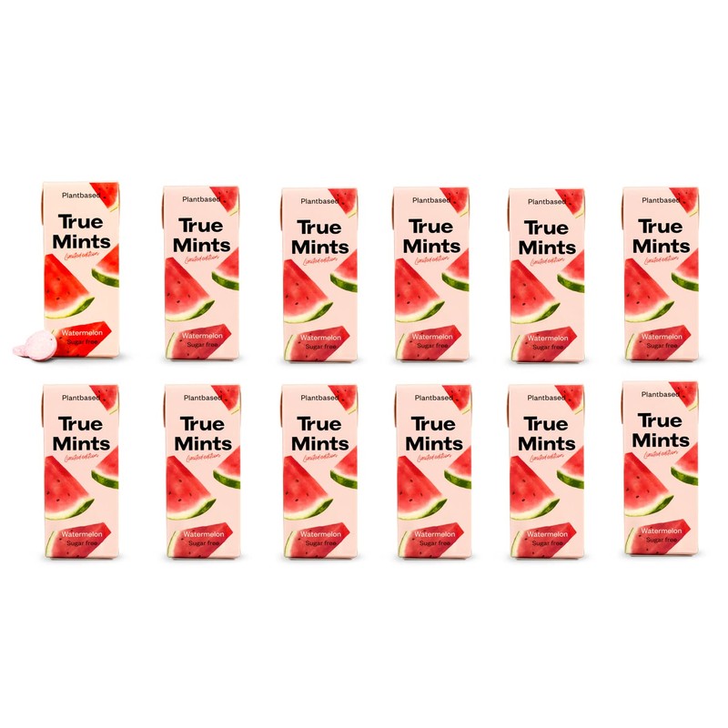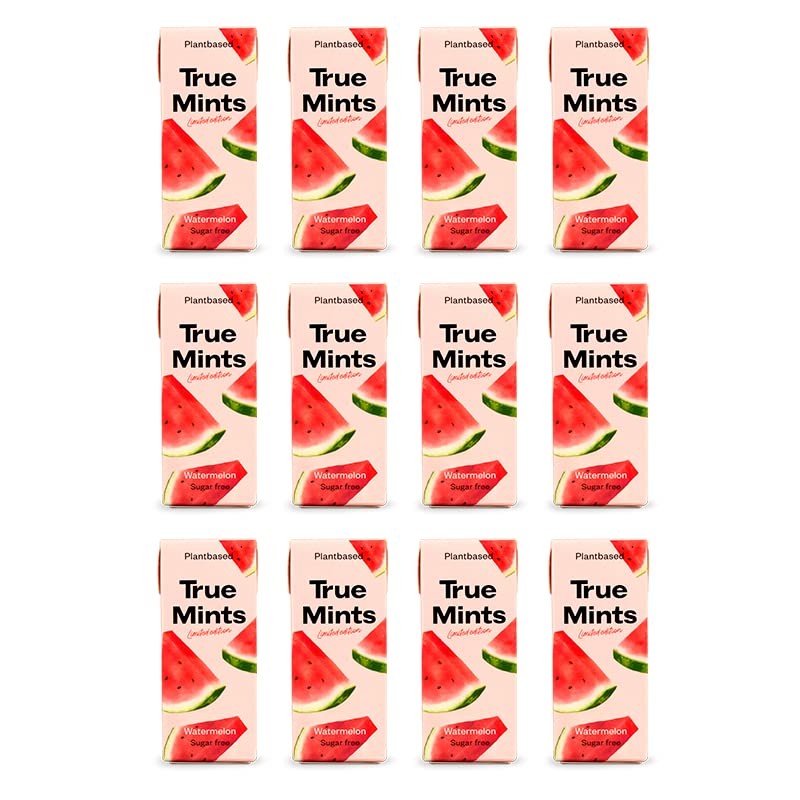 True Mints WATERMELON Flavour (12-pack) - Sugar Free Mints - Xylitol Mints - Fruit Pastilles - Sugar Free & Plantbased Travel Sweets with Natural Flavours