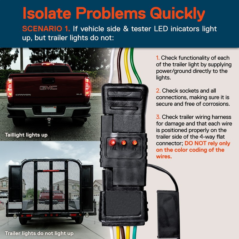 - NO TOOLS NEEDED - Plug-n-play design means you don't need anything else to effectively test your trailer light harness.