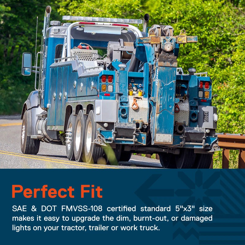 Whether you are upgrading your tractor or trailer, these lights are the ideal choice. Featuring SAE I6 and S2 ratings for turn and brake signals, these lights are suitable for vehicle applications wider than 80 inch. Moreover, with DOT FMVSS-108 approved, you can be sure that they are a perfect fit and completely legal.