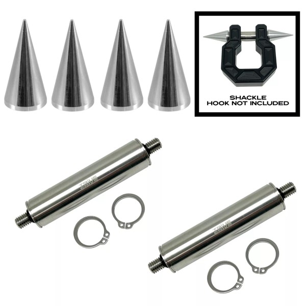 This kit comes with 2 pin, 4 C-clips, and 4 spikes, which isenough for two shackles or hooks. If you need them for 1 hook, you’ll want to check out our single kit listings.
