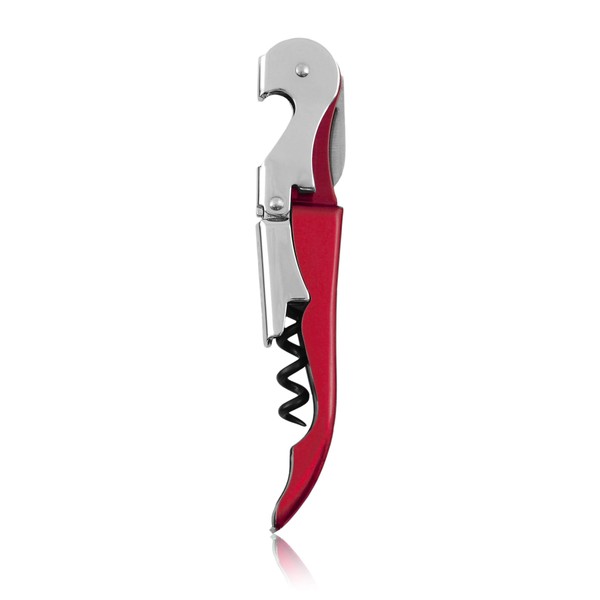 - THE EVERYDAY WINE KEY - Where form meets function. Our double-hinged waiter's corkscrew sports a bottle opener, serrated wine bottle foil cutter, 5-turn non-stick worm, and metallic red finish. This corkscrew belongs on your bar cart.