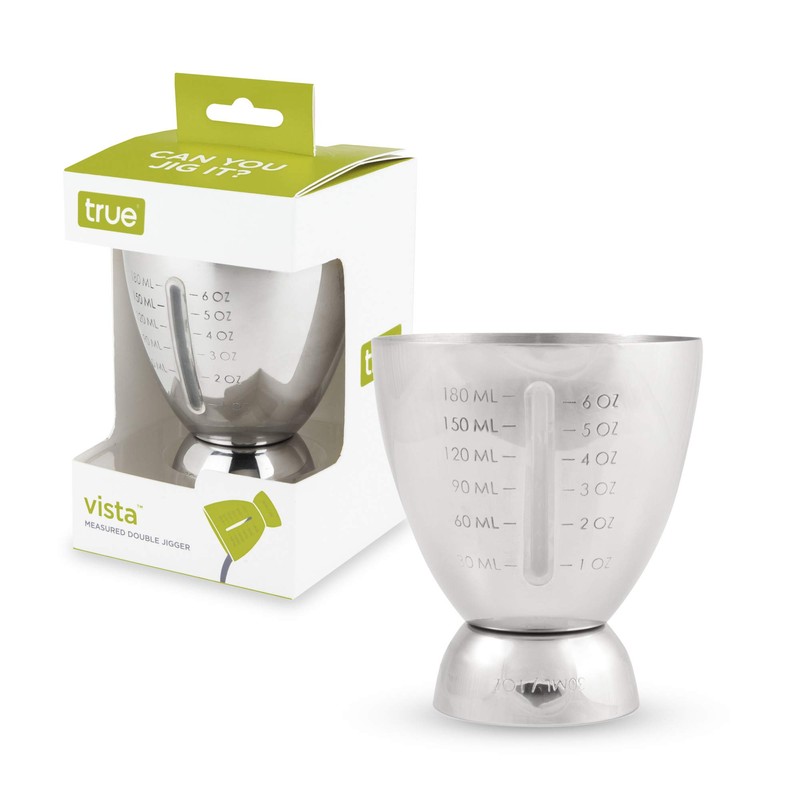 True Vista Bar Cart Accessory Measured Double Cocktail Jigger Set of 1, Silver
