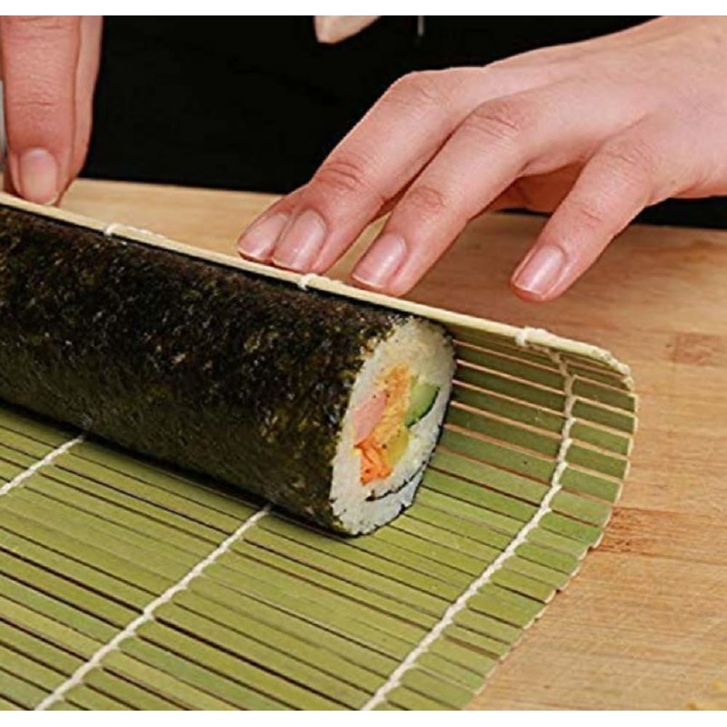 - Crafted from durable, eco-friendly bamboo, this sushi roller is designed for long-lasting use. The bamboo construction provides a smooth, natural surface that ensures a perfect roll every time, making it ideal for both sushi and kimbap. Bamboo is also known for its lightweight yet sturdy nature, ensuring that this roller can withstand countless sushi-making sessions while maintaining its integrity.