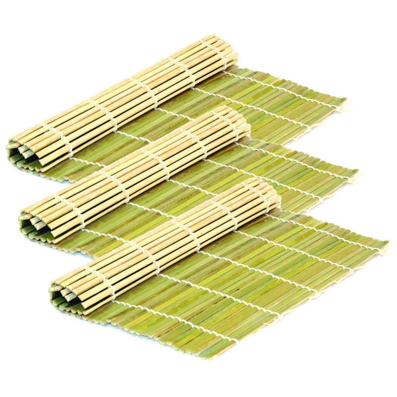 TrueCraftware- 9-1/2” x 9-1/2” Flat Bamboo Sushi Roller Set of 3- Sushi Rolling Mat Sushi Roll Maker Kimbap Roller for Making Shaping & Molding Sushi Roll & Kimbap Home Kitchen Restaurant