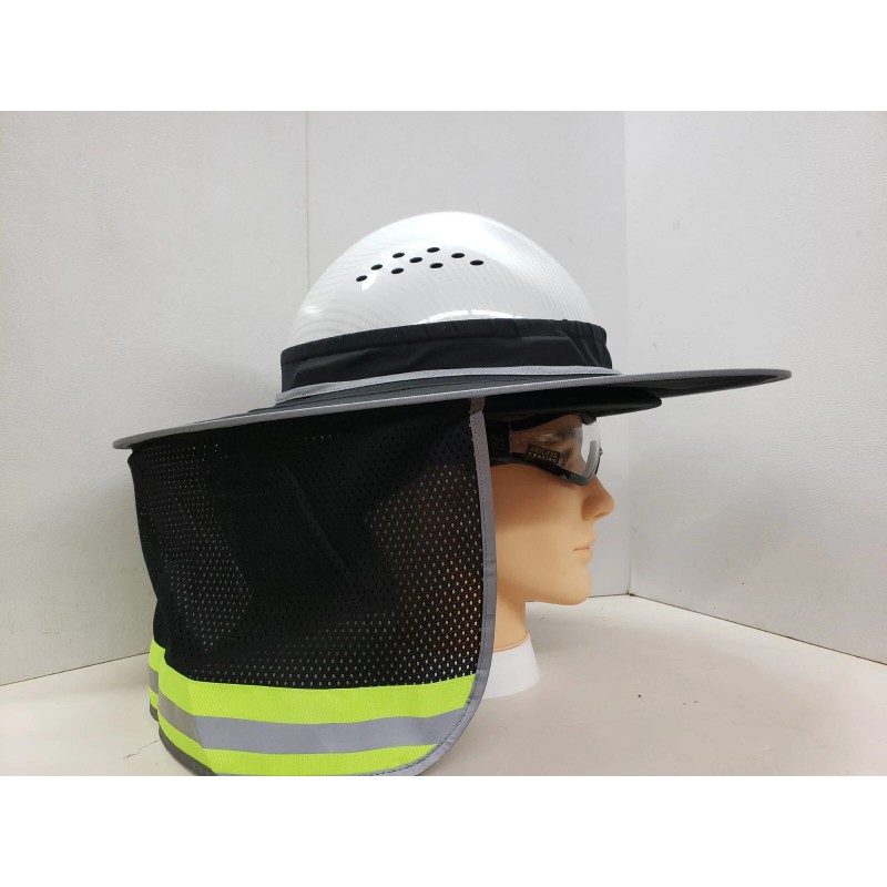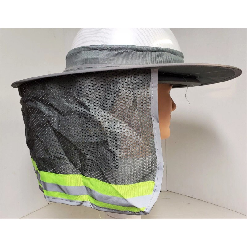 TRUECREST Hard Hat Sun Shade Visor for Full Brim Mesh Neck HI VIS REFLECTIVE STRIPE - Grey