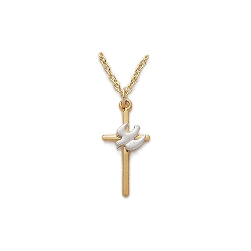 TrueFaithJewelry Two-Tone 18KT Gold Plated Sterling Silver Cross Pendant Necklace with Dove Religious Jewelry, 1 Inch