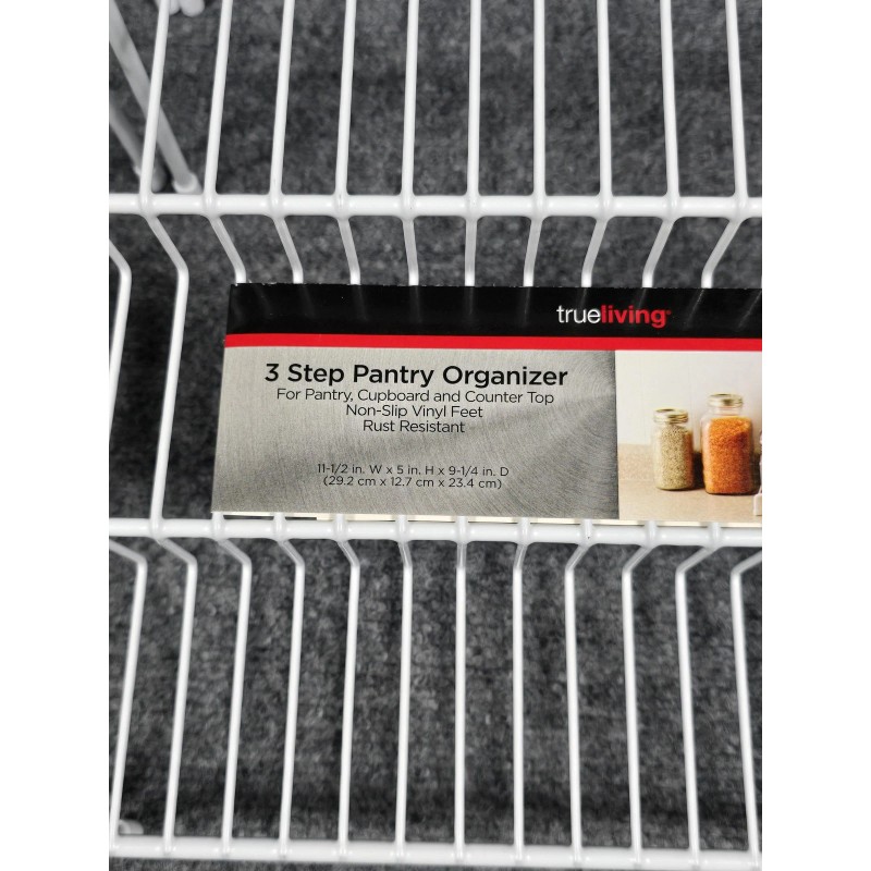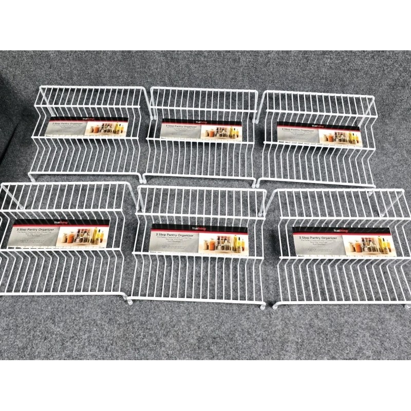 True Living 3 Step Pantry Organizer Rack Kitchen Spice Shelf Set of 6 White Wire
