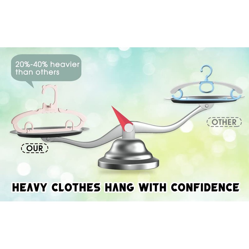- ♥Excellent Quality: These baby clothes hangers are made of 100% brand new PP material and have no unpleasant smell. Each of the 10 kid hangers weighs 1.26 pounds, which is much heavier than other plastic hangers and can hang heavy clothes. Both dry and wet, suitable for indoor and outdoor.