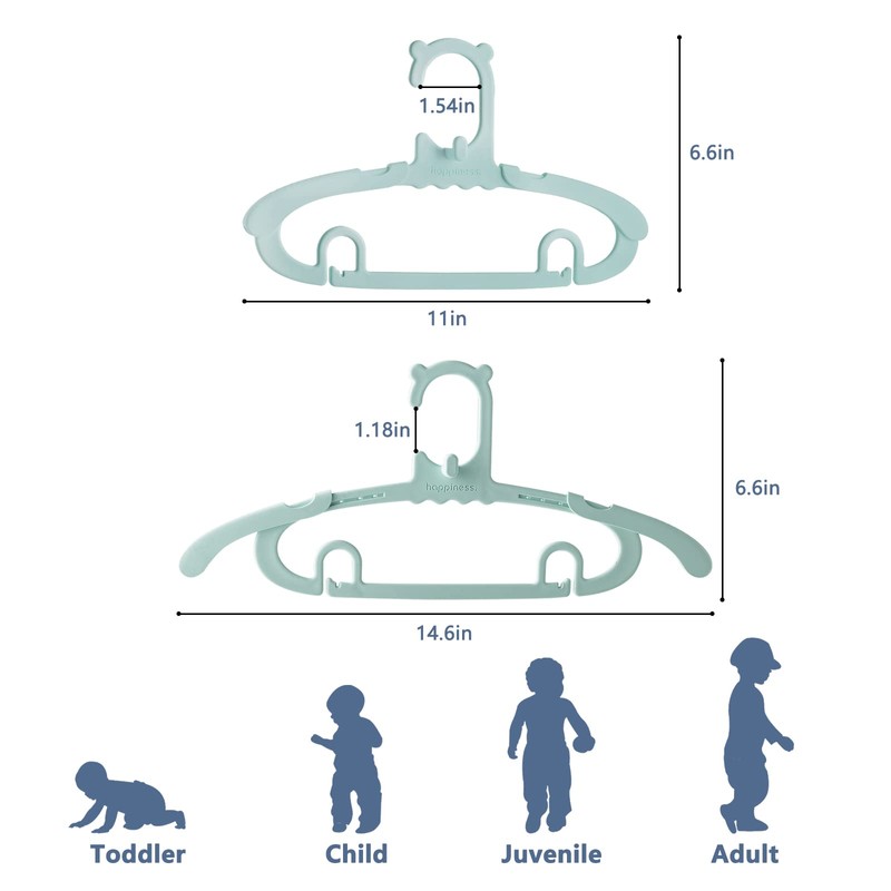 - ♥ Save money and worry: These infant hangers stretch on both sides and range in length from 11 inches to 14.6 inches. Clothes suitable for children's growth at different stages can be used from infants to teenagers to adults. Parents don't have to worry about how to choose clothes hangers of the appropriate size to save a lot of money.