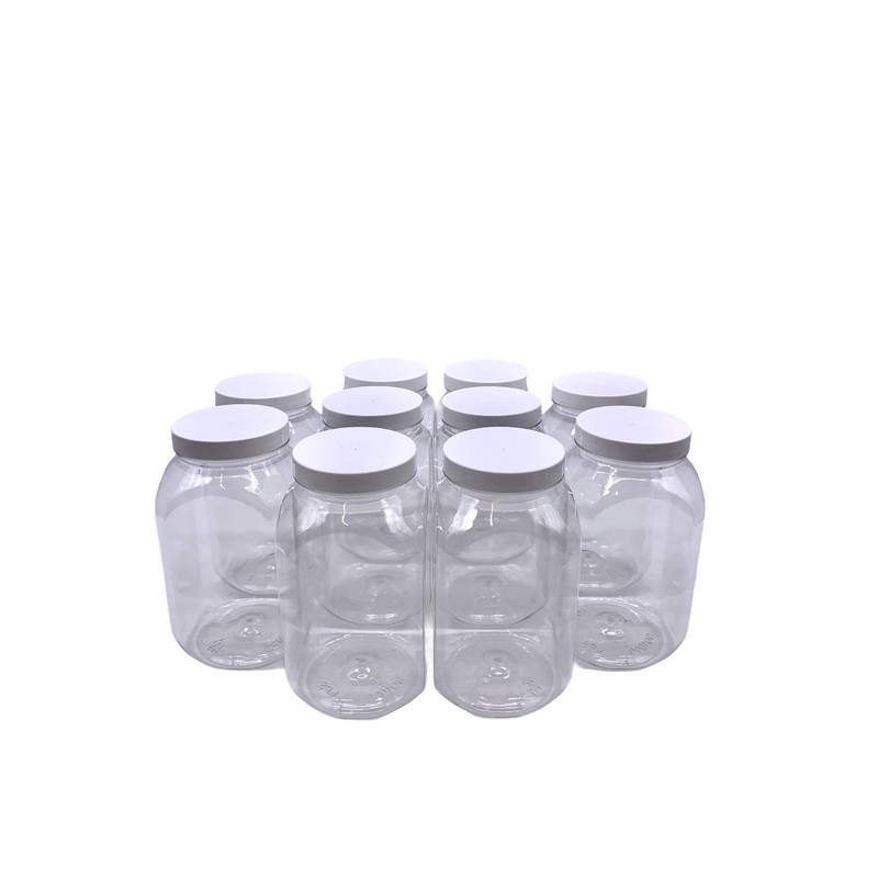 Truenova 10 x 995ml Square Plastic Storage Jars Kitchen/Garage Organisation & White Lids