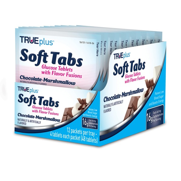 TRUEplus® Soft Tabs Glucose Tablets – 12 Packs – 48 tabs (Chocolate Marshmallow)