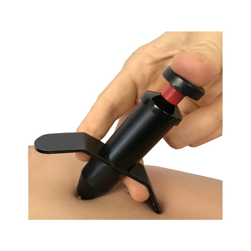 Overview encourage healing and relieve tension with this chiropractor-developed acupuncture device. Just place tension reliever on a trouble spot and push the plunger; 2 crystals inside create a small stimulus that mimics acupuncture. Encourage healing with this chiropractor-developed tension reliever. Just place this needleless acupuncture device on a trouble spot and push the plunger; two crystals inside create a small stimulus that mimics acupuncture.