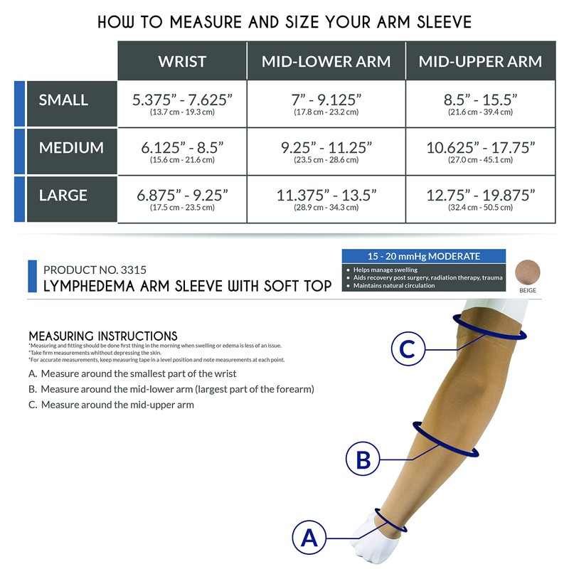 Truform 3315 is a ready-to-wear arm sleeve with 15-20 mmHg therapeutic gradient compression.