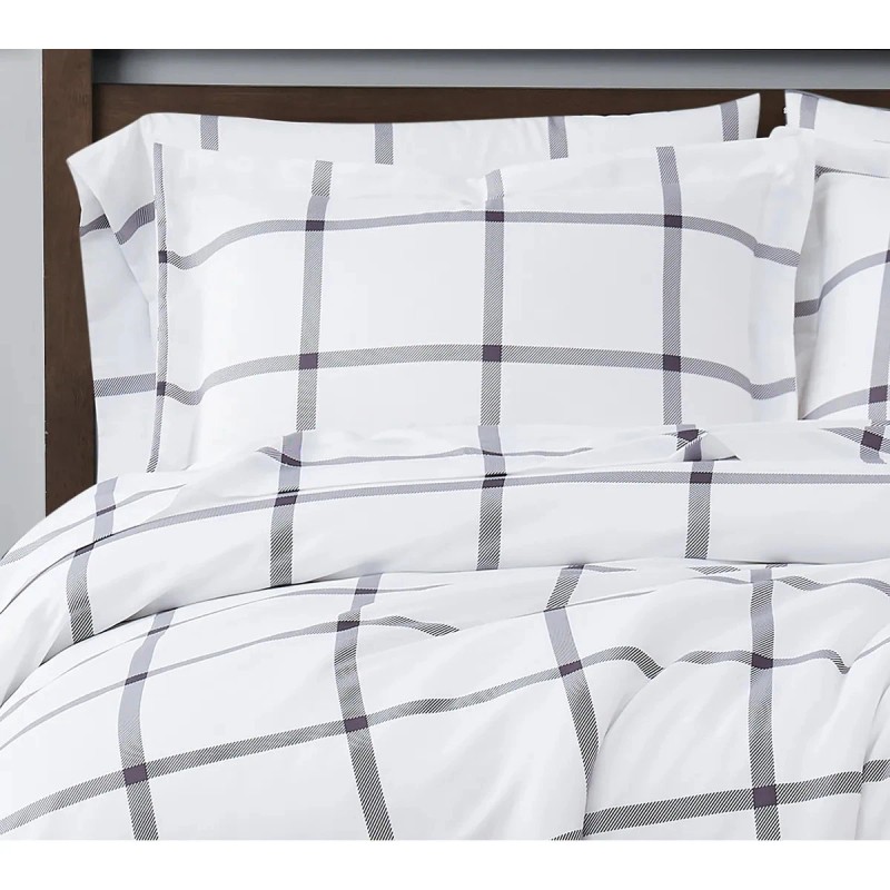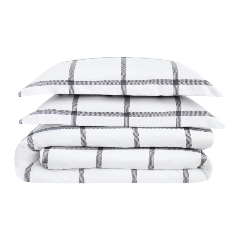 Truly Soft Printed Windowpane 3 Piece Comforter Set White/Charcoal Grey Twin - T