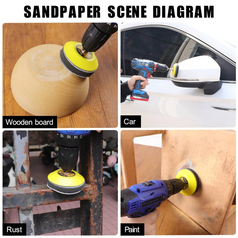 - 【Wide Applications】: drill sanding attachment pad has great performance for polishing or sanding on wide variety project surface. You can use it to remove scratches on your car’s clear coat, to wet sand your polyurethane countertop, to polish mirror or other projects, such as metal, ceramic,rubber, leather,or handcrafts