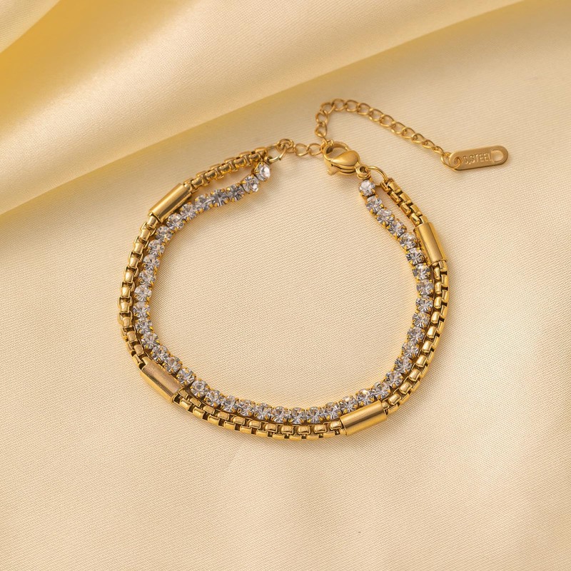 TRUMIGA Pulsera de Oro para Mujer, Pulsera Apilada de Doble Capa, Diamante de Varias Capas, Pulsera de Zirconia Cúbica Brillante, Chapada en Oro de 14 Quilates, Pulsera de Personalidad de Moda, Delicada Brazalete de Ajustable, Accesorios de Joyería de Mo