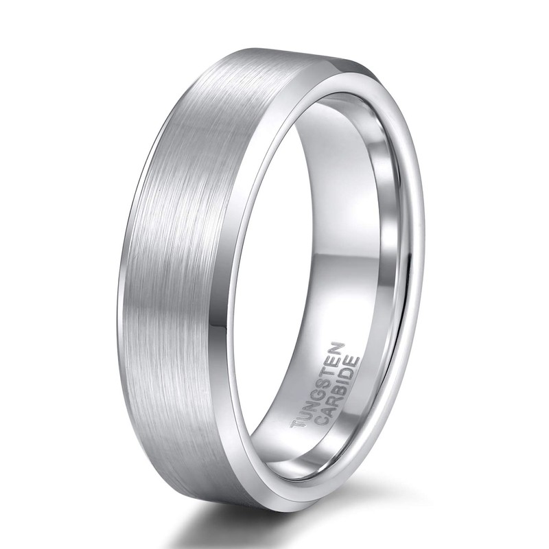 TRUMIUM 6mm Tungsten Rings White Silver for Men Women Wedding Band Brush Beveled Edge Size 8.5