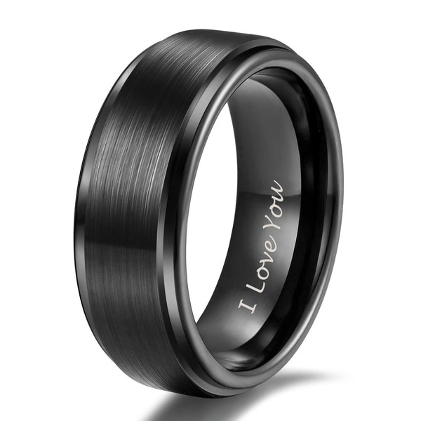 TRUMIUM 8mm Tungsten Carbide Wedding Rings Men Women Black Brushed Engraved I Love You Comfort Fit Size 10.5