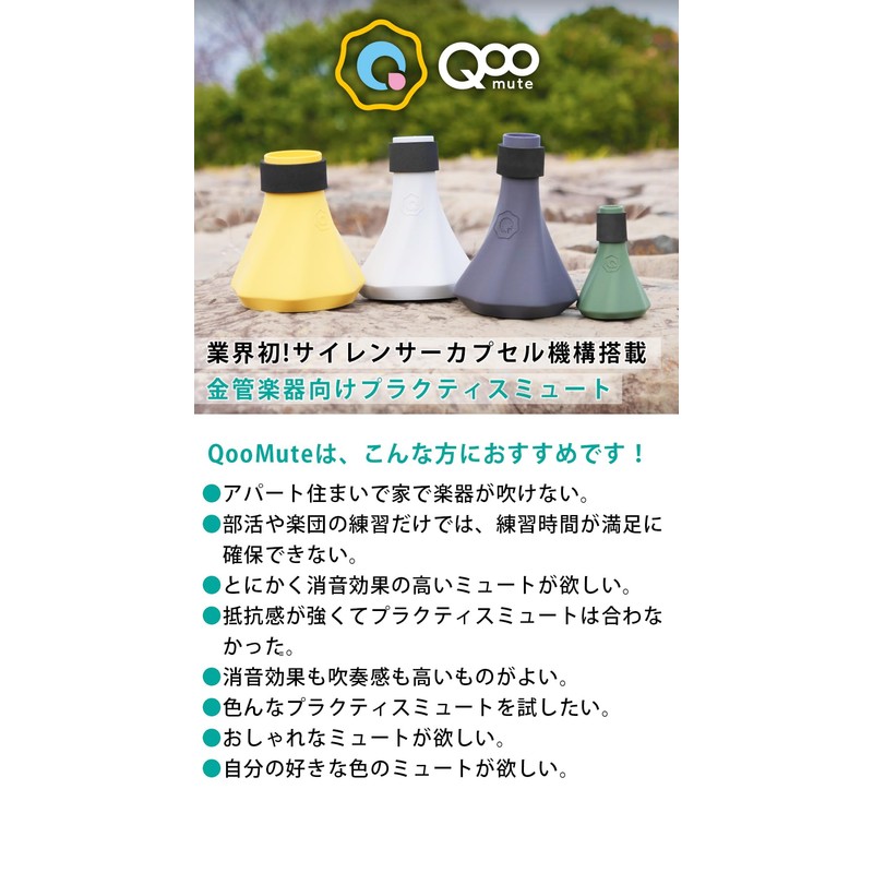 • Product Name: QooMute for trumpets. Package Contents: Mute body, 3 capsules (special sound-deadening capsules, special capsules, blurking sensation, tonic capsules), instruction manual (English language not guaranteed)