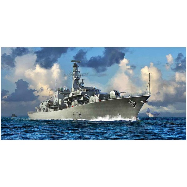- Plastic model kit of an English type 23 frigate from the 2000s with 200 pieces, photoetched parts and stand. Length built: 190 mm. Diameter: 23.4 mm.