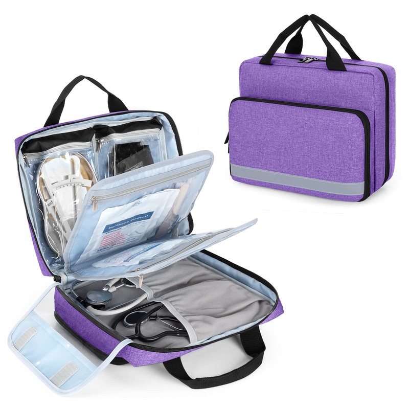- Múltiples bolsillos: dos divisores interiores con cuatro bolsillos y dos bolsillos de PVC transparente ubicados en el otro lado de esta bolsa médica, que mantienen tus accesorios de enfermera bien organizados.