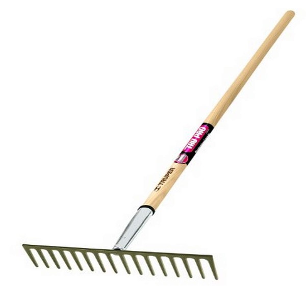 Truper 33126, R-16MXX, Tru Pro Heavy Duty Road Rake, 16 Teeth, 1-1/2-Inch Section, Ash Handle, 66-Inch. 66" Professional Grade Premium North American White Ash handle. White Ash handles give optimum ratio of resistance and flexibility. 16 teeth road rake holds up to rugged outdoor use. Commercial duty for pro or rugged homeowner use. Tru pro is the contractors choice for professional use. Truper has been in the hand tool manufacturing business for over 40 years and is by far the largest Mexican company in its field. Truper relies on the most advanced modern and efficient technology to guarantee the optimum quality and value of its products and demanding service needs of the company's global customers.. Tru Pro is a premium line true to the specs of contractor-grade tools. The unit is also geared at the consumer who wishes to step up to high-end tools. Best Value at the top end of the market. Tru-Pro products features the heaviest gauge heads available, tab sockets or steel collars, along with a select choice of white ashwood handles for the optimum ratio of resistance and flexibility. Lifetime warranty backs all Tru-pro tools.